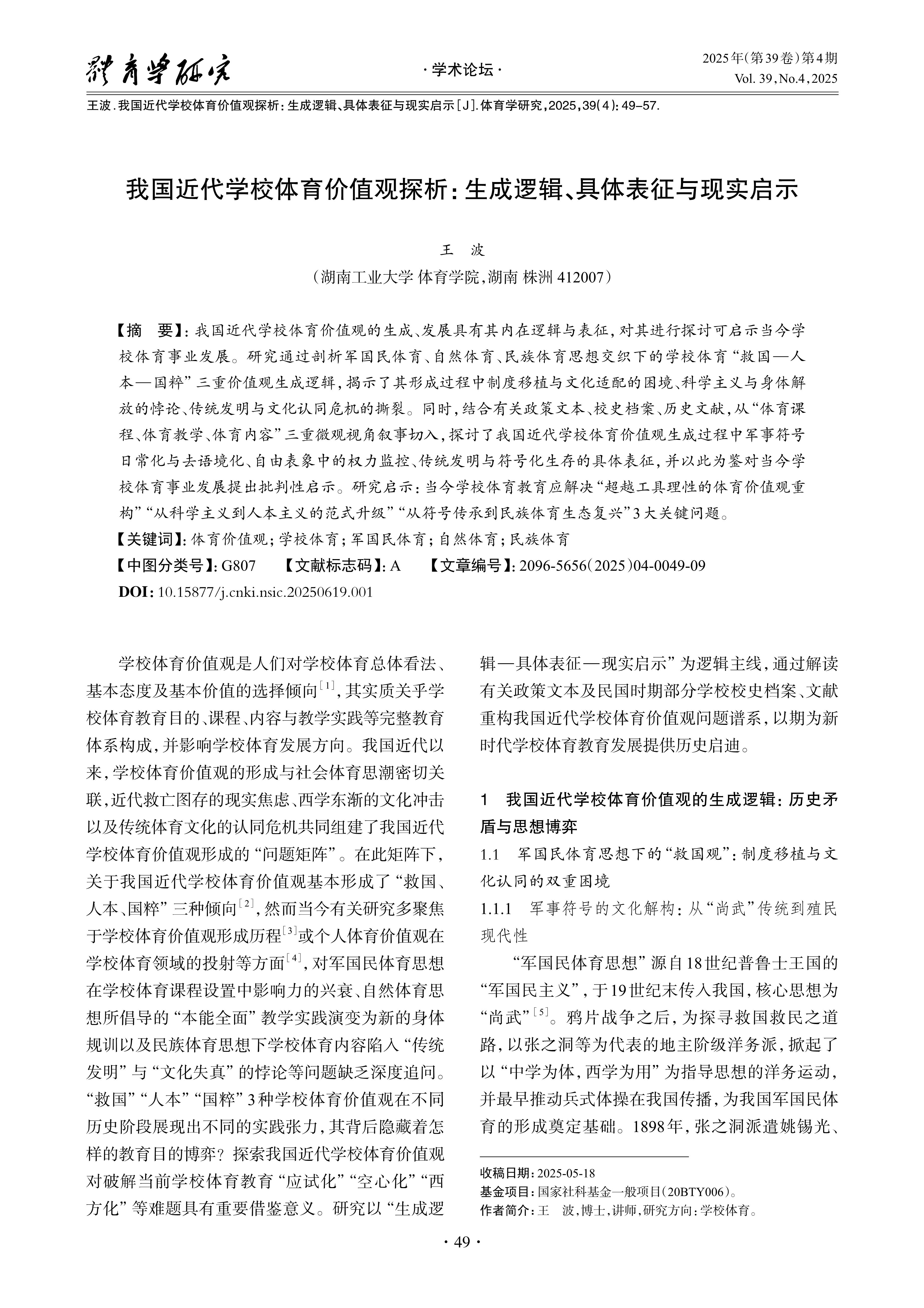 我国近代学校体育价值观探析:生成逻辑、具体表征与现实启示