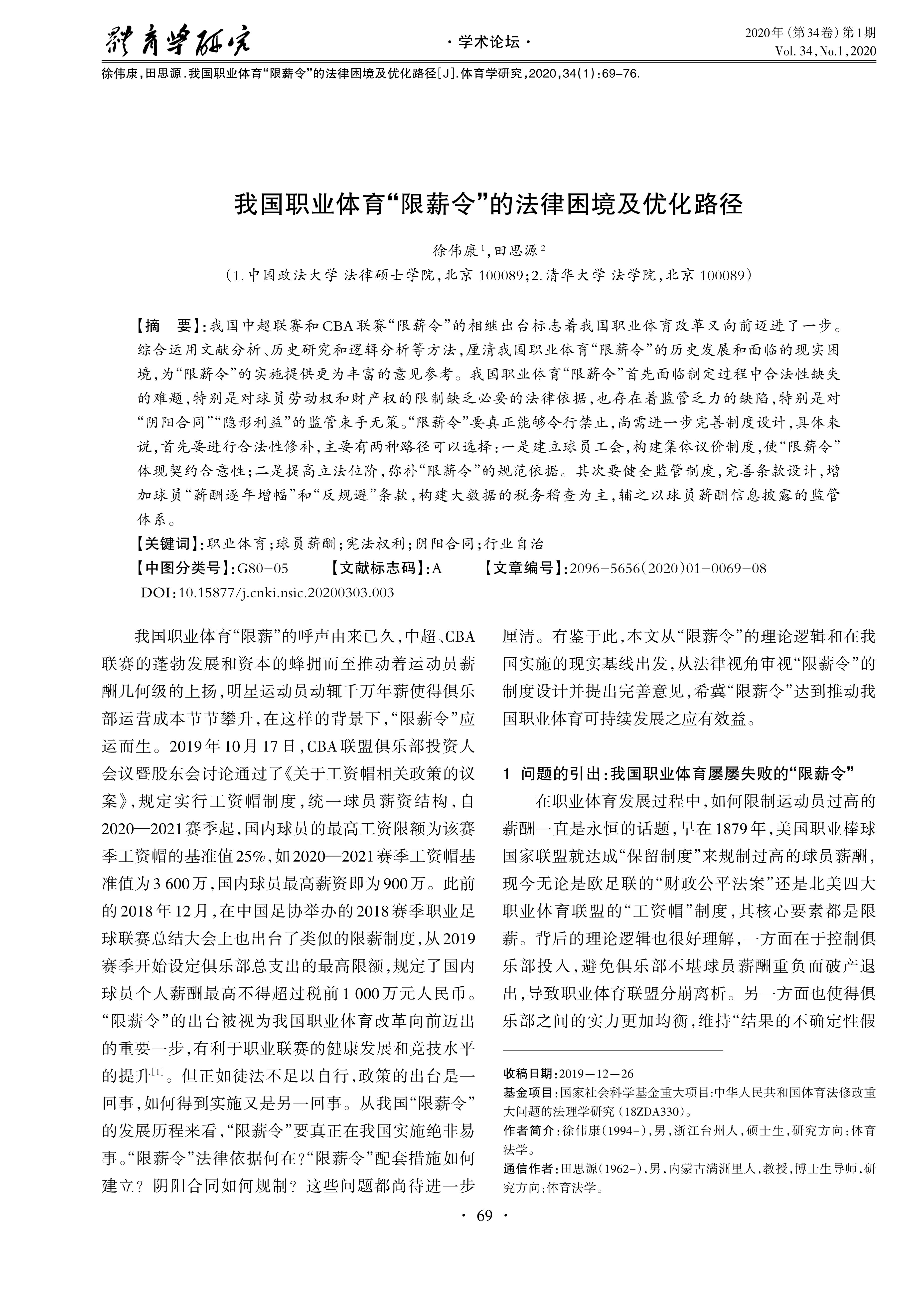 The successive issuance of“salary restriction order”in China’s Super League and CBA League indicates that the reform of professional sports in China has moved forward a step further. By using the methods of literature analysis,historical research and logical analysis,the historical develoment and dilemma of“salary restriction order”in China’s professional sports are clarified,so as to provide a richer reference for the better implementation of“salary restriction order”. In the process of formulation,the“salary restriction order”first faces the practical problem of lack of legitimacy,especially the lack of necessary legal basis for the restriction of the labor rights and property rights of athletes,and the lack of supervision,especially the inability to do anything about the supervision of“Yin-Yang contract”and“invisible interests”.In order to play its function,we need to further improve the system design.Specifically,first,we need to repair the legitimacy.There are two main ways to do so. One is to establish the athletes’union and build the collective bargaining system,so that the“salary restriction order”can reflect the contractual agreement.The other is to improve the legislative rank and make up for the normative basis of the“salary restriction order”.Secondly,we should improve the regulatory system,by improving the design of terms,adding clauses of“yearly salary increase”and“anti-circumvention”,and building a regulatory audit system of big data ,supplemented by the supervision system of players’salary information disclosure.